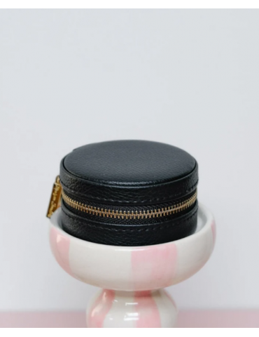 Boîte à bijoux de voyage cuir rouge : • Velours ultra-doux ( intérieur, extérieur) • Motif : ronde • Fermeture zip dorée et gravée Maison Scarlett