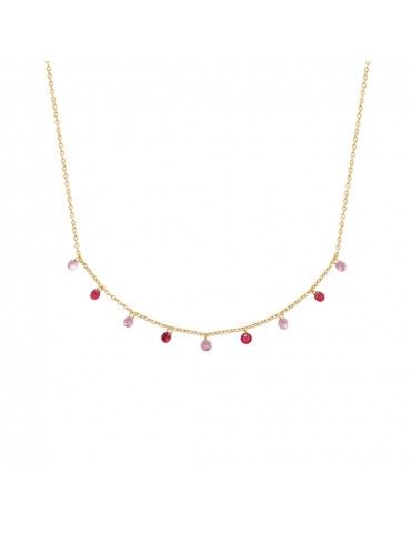Collier plaqué or femme : • Pendentif bi-ton • Oxyde de zirconium rouge centrale sertis griffes • Bordure forme goutte d'eau argent empierrée en oxydes de zirconium sertis griffes • Longueur : 40 cm + 3 cm