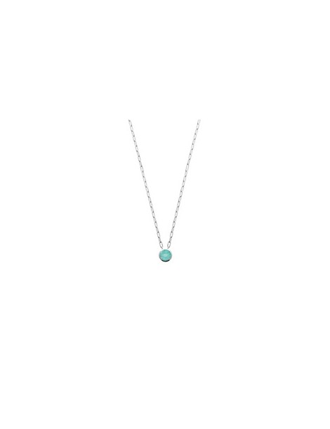 Collier Argent 925 Rhodié Amazonite Solitaire Femme
