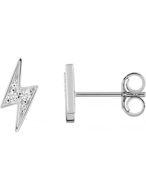 Boucles D'Oreilles Argent 925 Rhodié Oxydes Motif Éclair Femme