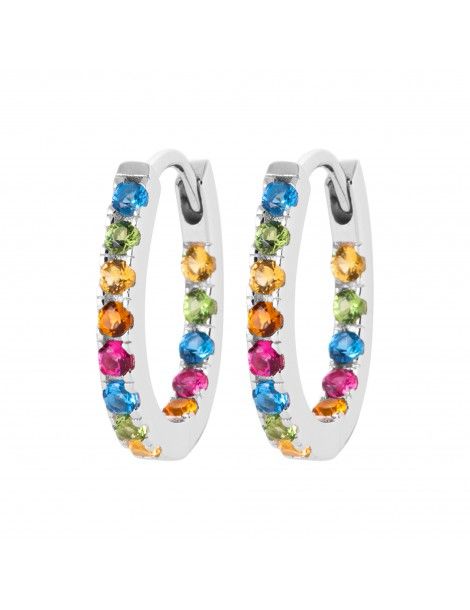 Boucles D'Oreilles Créoles Argent 925 Rhodié Oxydes Multicolores Monture Empierrée Femme